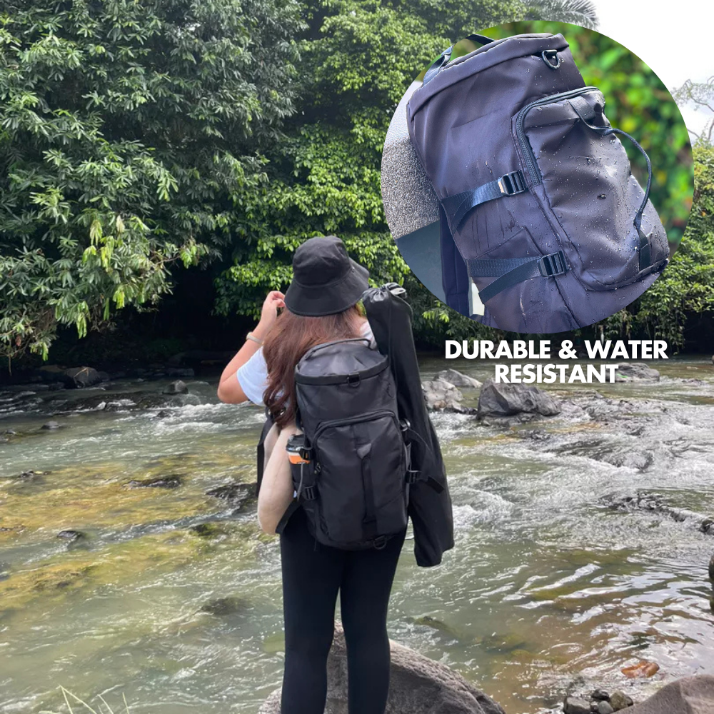 Backpack for heavy loads or outdoor adventures. Secure for crowded streets, hiking or sprints.