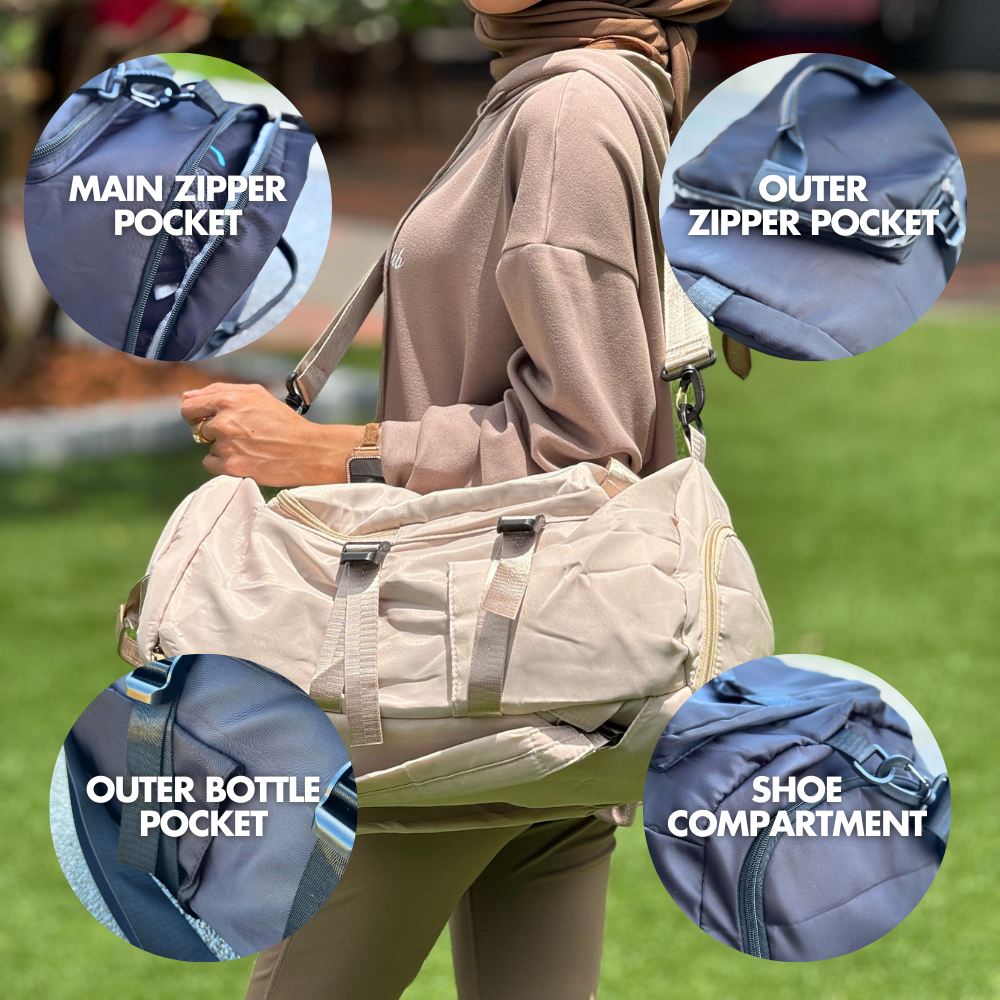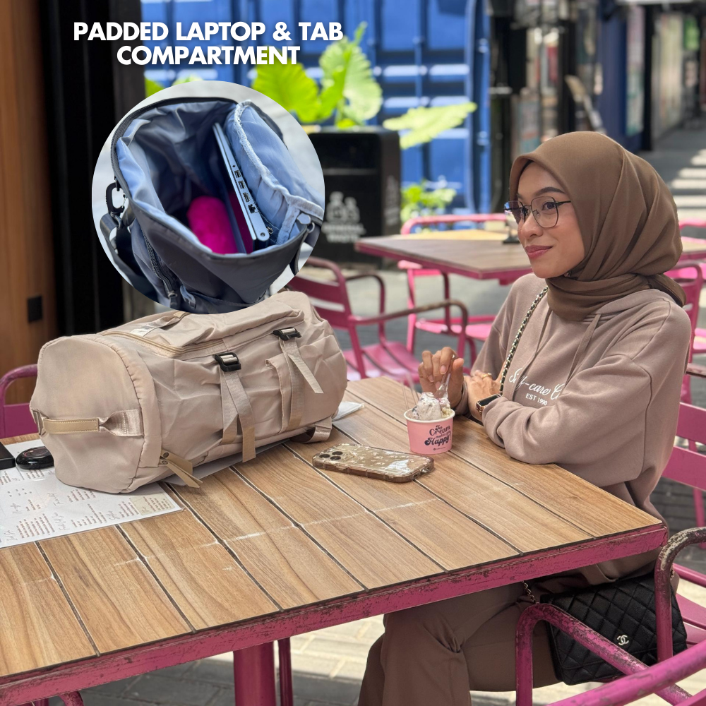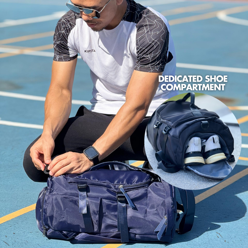 The OmniDuffel360™️ Bag is the ultimate fusion of style, versatility, and practicality, designed to adapt to your dynamic lifestyle. Whether you’re navigating Kuala Lumpur’s bustling streets, jetting off to a weekend getaway in Penang, or juggling work and gym sessions, this bag transitions seamlessly between shoulder/crossbody, hand carry and backpack modes while keeping your essentials organized and secure. Crafted with premium materials and a gender-neutral aesthetic, it’s built to withstand Malaysia’s humidity, rain, and your busiest days.
